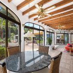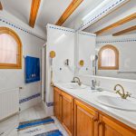 De unieke indeling integreert binnen- en buitenruimtes moeiteloos, zodat u vanuit elke kamer kunt genieten van het omringende natuurschoon. Hoge plafonds met houten balken geven de villa een authentieke Spaanse charme, met ruime lounges die elk worden verwarmd door gezellige open haarden. De villa beschikt over vier grote slaapkamers en drie badkamers, waaronder een hoofdslaapkamer met een eigen badkamer voor extra comfort en gemak.